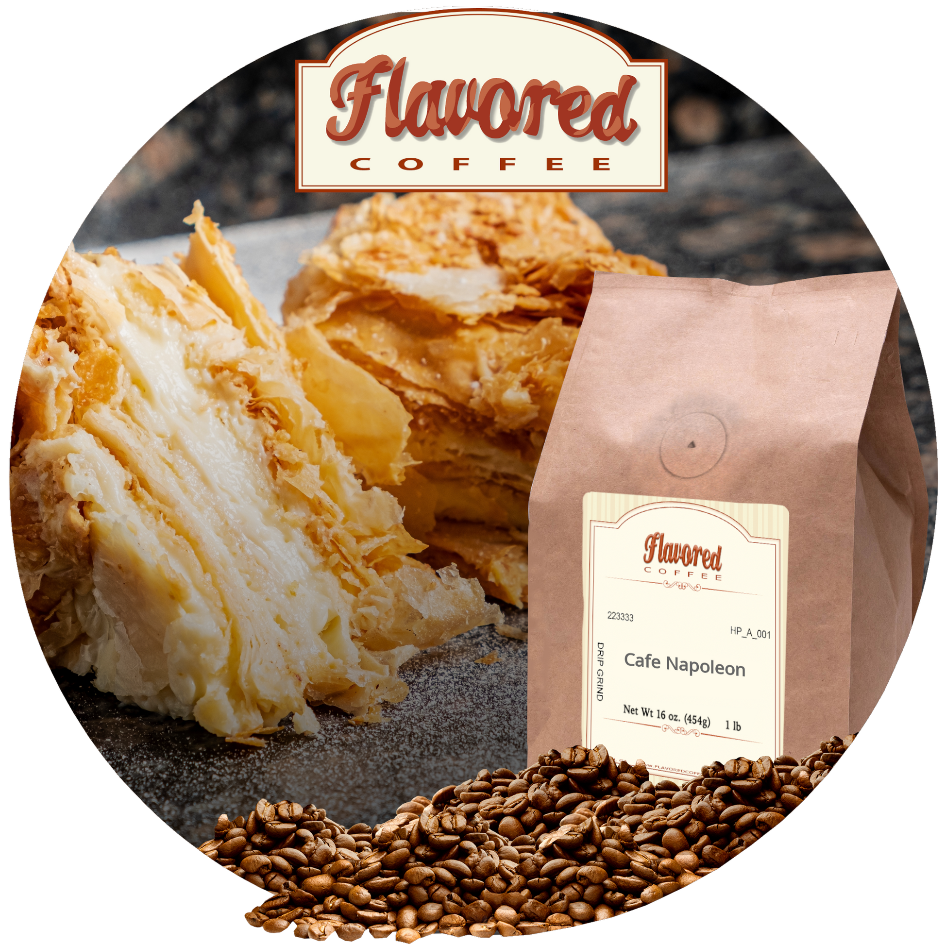 Indulge in the rich, velvety blend of our Cafe Napolean Coffee. A sophisticated mix of creamy caramel and bold coffee flavors for a regal treat!
